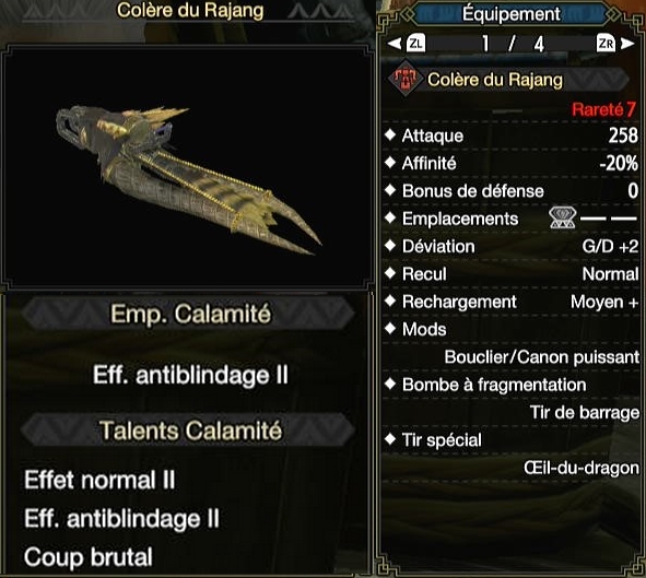 | Sniper | Steadiness | 2 | 1 | Annule la déviation aléatoire du HBG Rajang. Attention, Dango berserker vous remet un niveau de déviation aléatoire |
