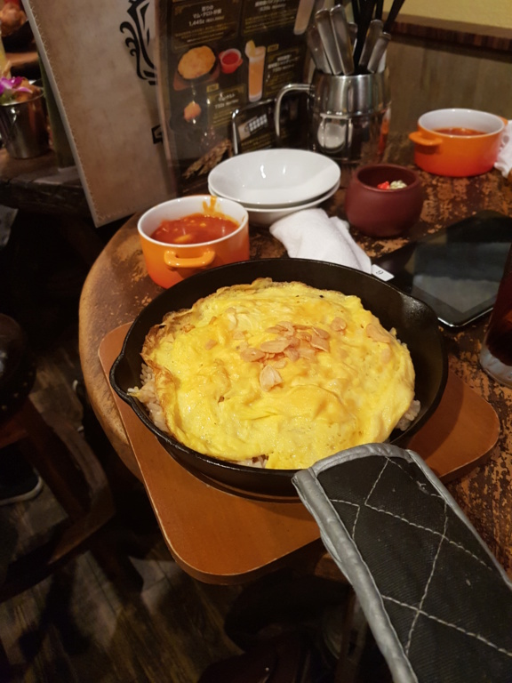 Au début de mon voyage était disponible une carte Kulve Taroth, comprenant des cocktails, une omelette et un plat inconnu, tous d’or vêtus évidemment. Avec des épices rouges pour l’omelette, si votre plat vient à s’énerver.