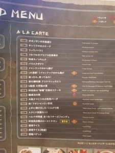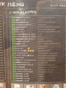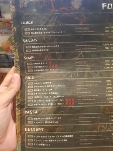 Histoire de rester intéressant pour ceux qui viennent souvent, le restaurant a des cartes temporaires en plus de la carte principale. Ces cartes sont liées évidemment aux événements du jeu. J’ai pu en voir trois pendant ma venue.