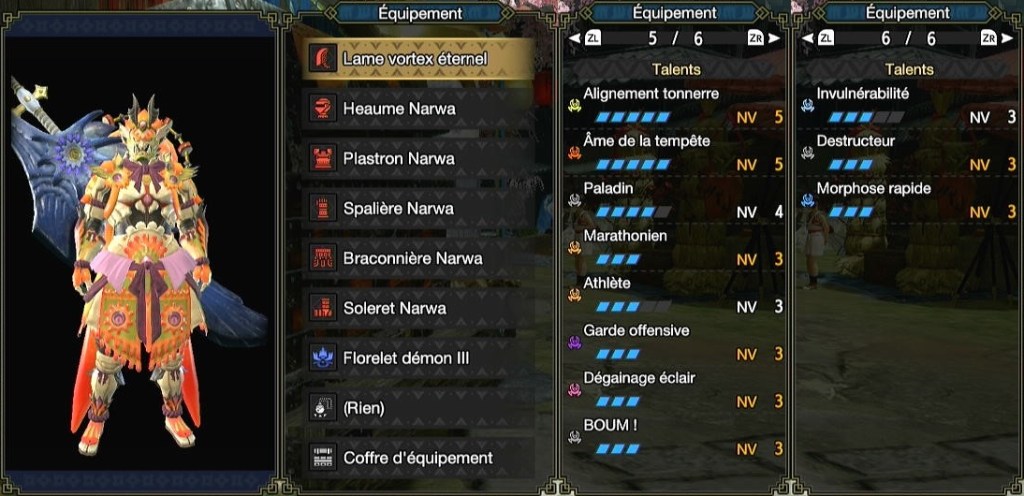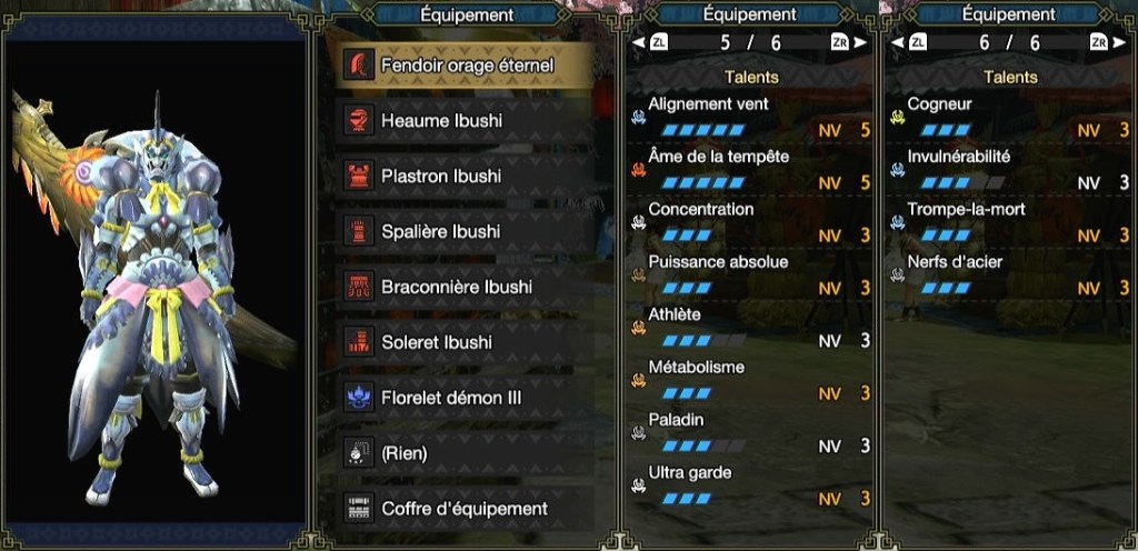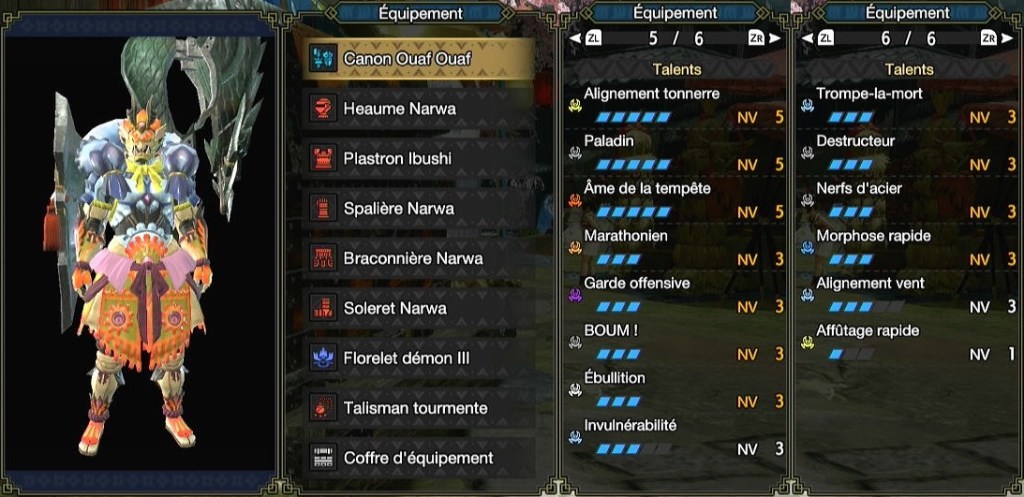 Âme de la tempête 3 est équivalent en pratique au niveau 3 du talent élémentaire, du coup le niveau 5 le met à la ramasse. Mais c’est sans compter l’idée de mixer 3 pièces Ibushi/Narwa avec 2 autres pièces ou ajouter le talent élémentaire avec un bon talisman (3pts du talent et 2 slots 1). En pratique, c’est peu intéressant mais pour le meme, ça peut être amusant.