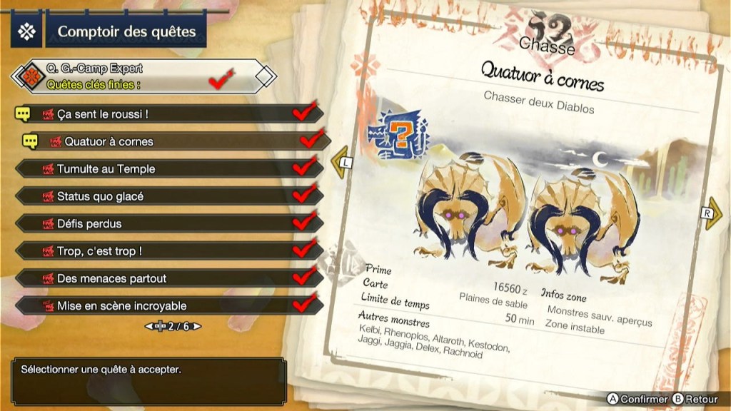 SAUF quand vous affrontez deux fois le même monstre. En effet, des quêtes comme le duo de Grand Baggi ou le duo de Diablos rang supérieur ont des tailles fixes et pas des couronnes hélas. Faire ces quêtes en boucle n’a aucun intérêt donc.