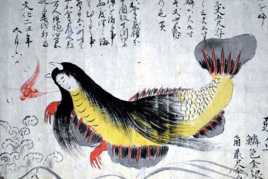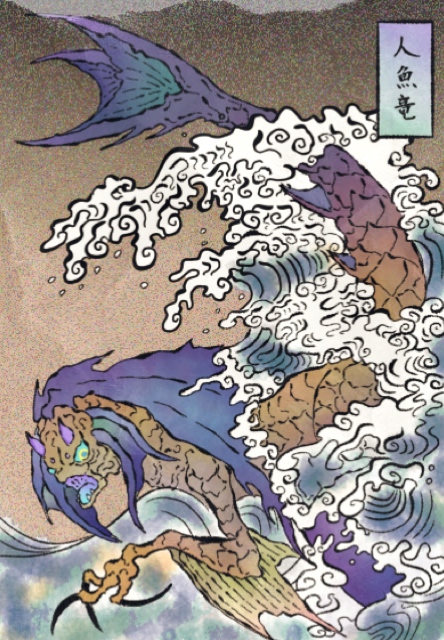 La version japonaise de la sirène est moins charmante. En effet, le ningyo (人魚) est juste un poisson à visage humain. Si on trouve une variante asiatique du lamantin, le dugong, ce dernier ne fréquente pas les eaux japonaises. Du coup pour imaginer des humanoïdes marins, les Japonais ont du se contenter des poissons et serpents.