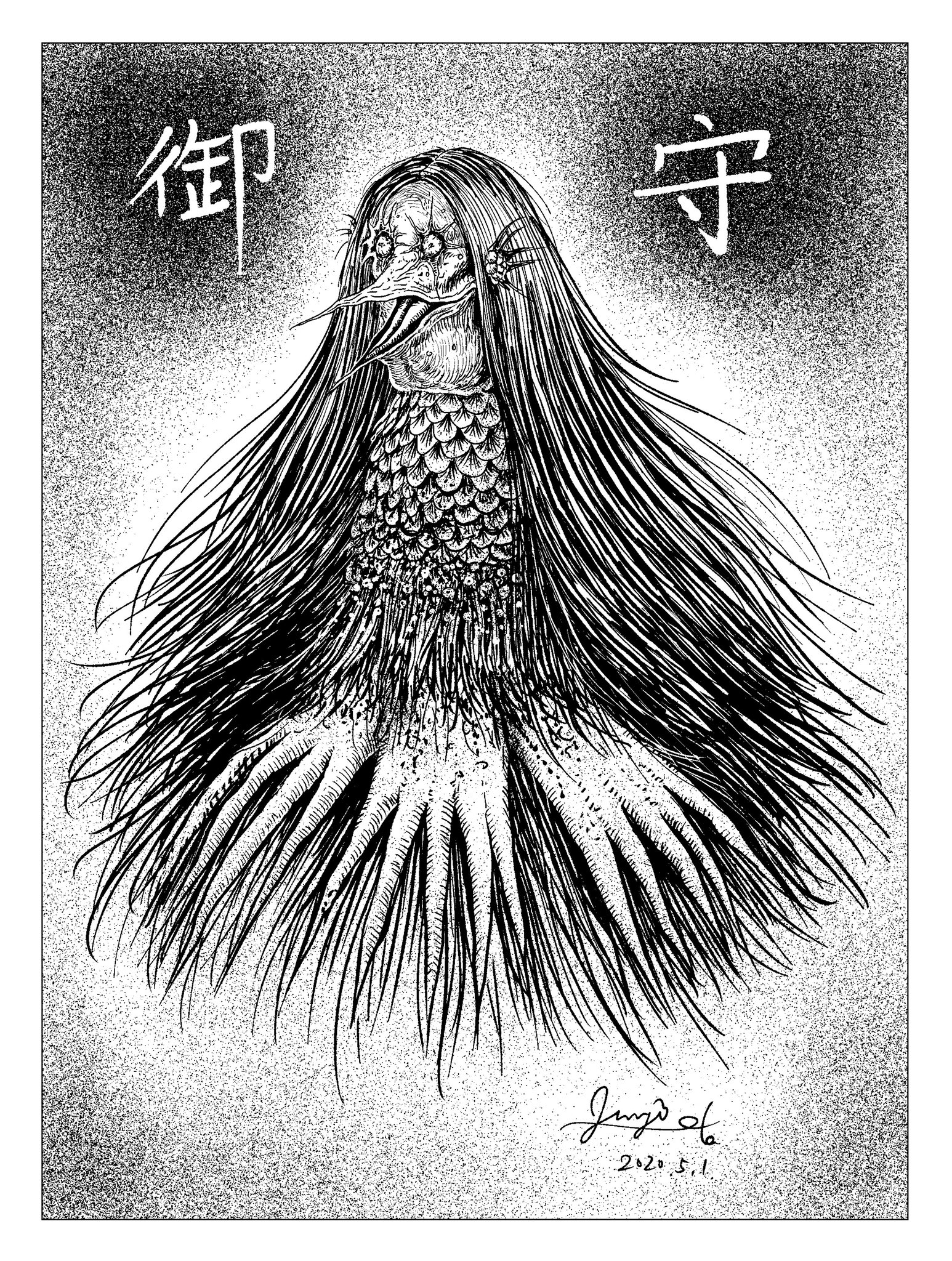 Il existerait de nombreuses variantes de ce mythe et ainsi de nombreux yokai marins protégeant des maladies. Rien qu’en 2020, l’amabie (アマビエ), une étrange créature au visage de femme avec un bec d’oiseau, un corps de poisson écailleux et 3 pattes, a été mis en avant après qu’un document de 1846 le présentait comme repoussant les maladies. Si bien qu’un défi de dessin Twitter a émergé contre le Covid !