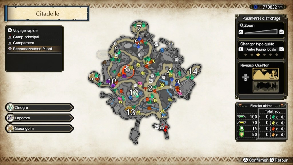 Sunbreak, outre les deux nouveaux camps pour la Jungle et la Citadelle, vos Pilpoils vous apportent une assistance supplémentaire via la fonction de Reconnaissance Pilpoil. Là encore c’est simple: