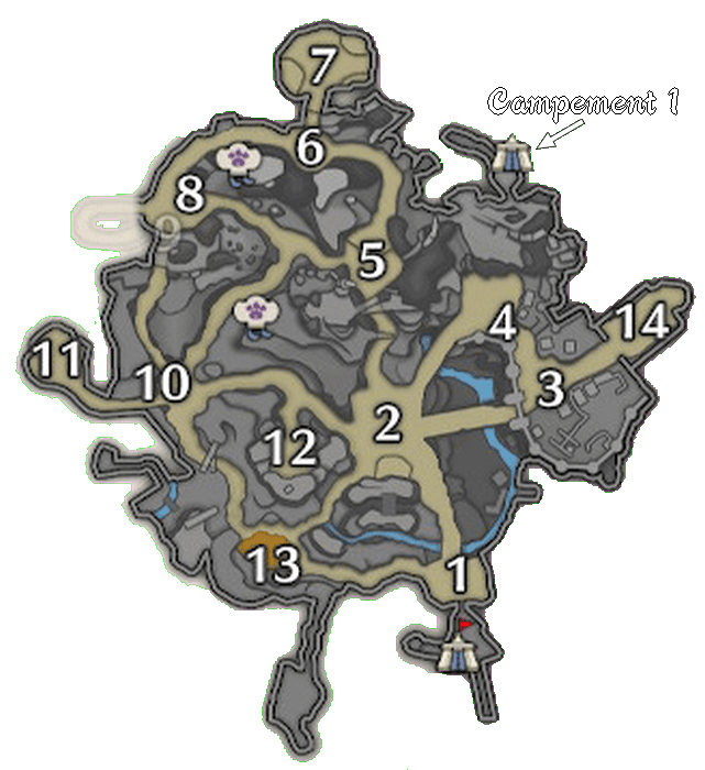 - Campement 1: Tuer 8 Hermitaur dans la Jungle (quête recommandée: M1★ Un véritable naufrage)