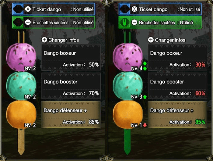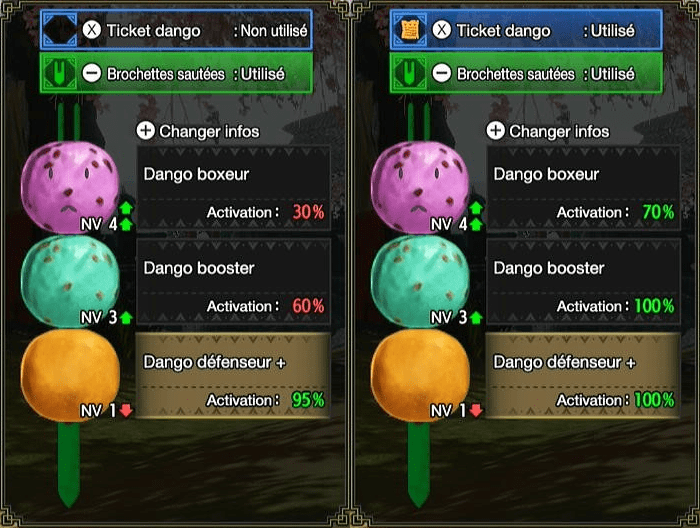 Comme vous pouvez le constater, cela impacte également les chances d’activation, réduisant de 20 et 10% celles des premiers et augmentant de 10 celles du dernier. Fort heureusement, on peut pallier à ce nerf via un ticket dango!