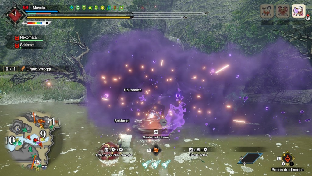 Vous pouvez aussi exploiter sur certains monstres l’attaque faible avec la direction arrière pour infliger des fléaux élémentaires aux monstres qui vous profiteront une fois la monte finie. Du coup, essayez d’utiliser ces attaques à la toute fin de la monte pour profiter au maximum de leurs effets.