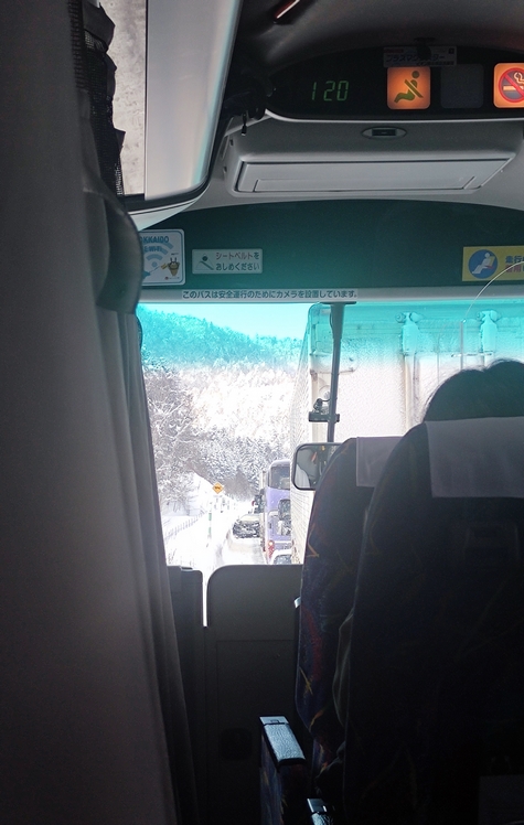 Me voilà donc dans mon bus, comblé aux anges et passant les 4h de trajet en regardant mes séries pour tuer le temps tout en profitant du paysage des vastes étendues enneigées d’Hokkaido… Pour finalement découvrir… Un accident de la circulation en pleine montagne. Vous avez remarqué à quel point je déborde de chance ?