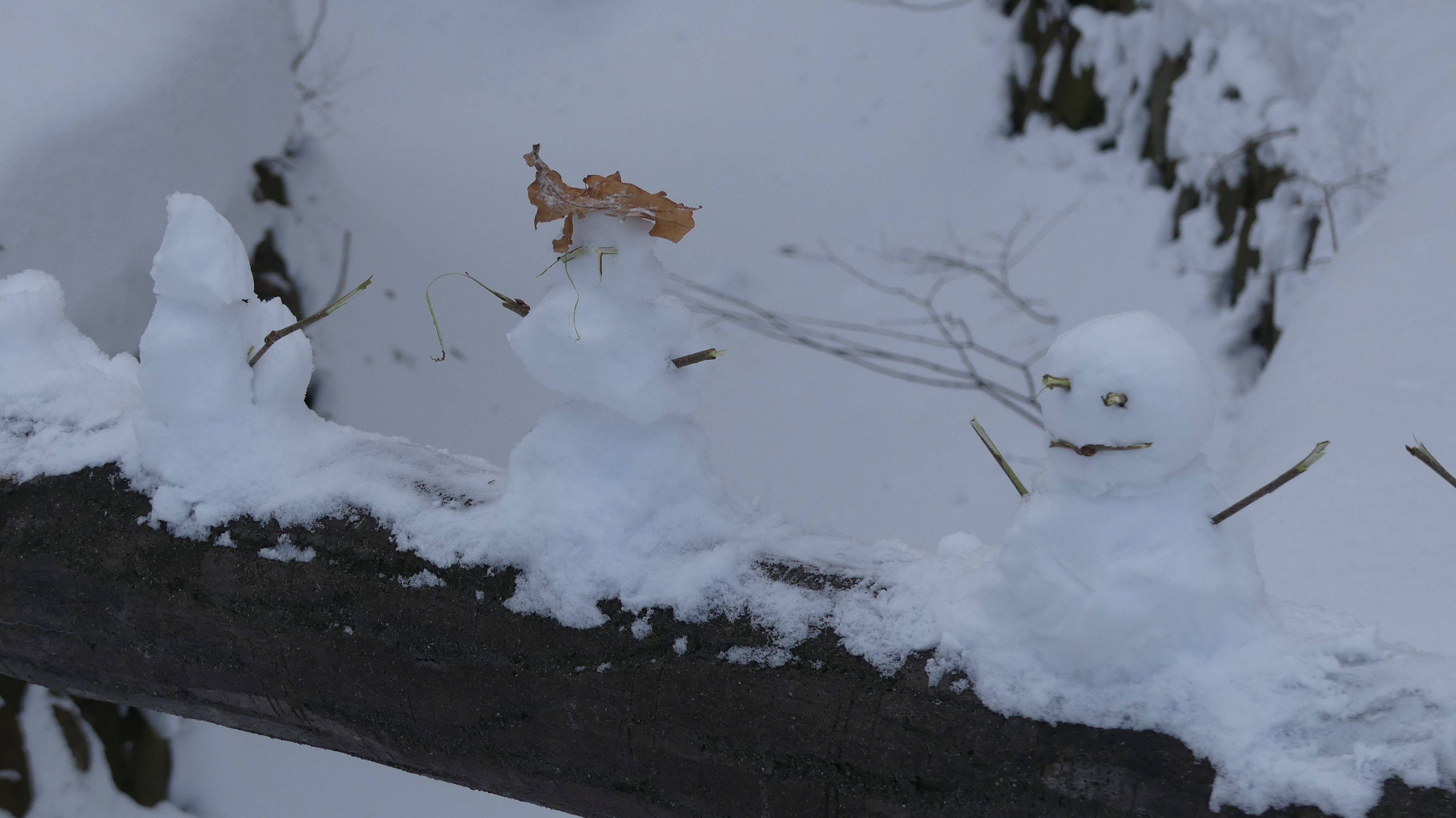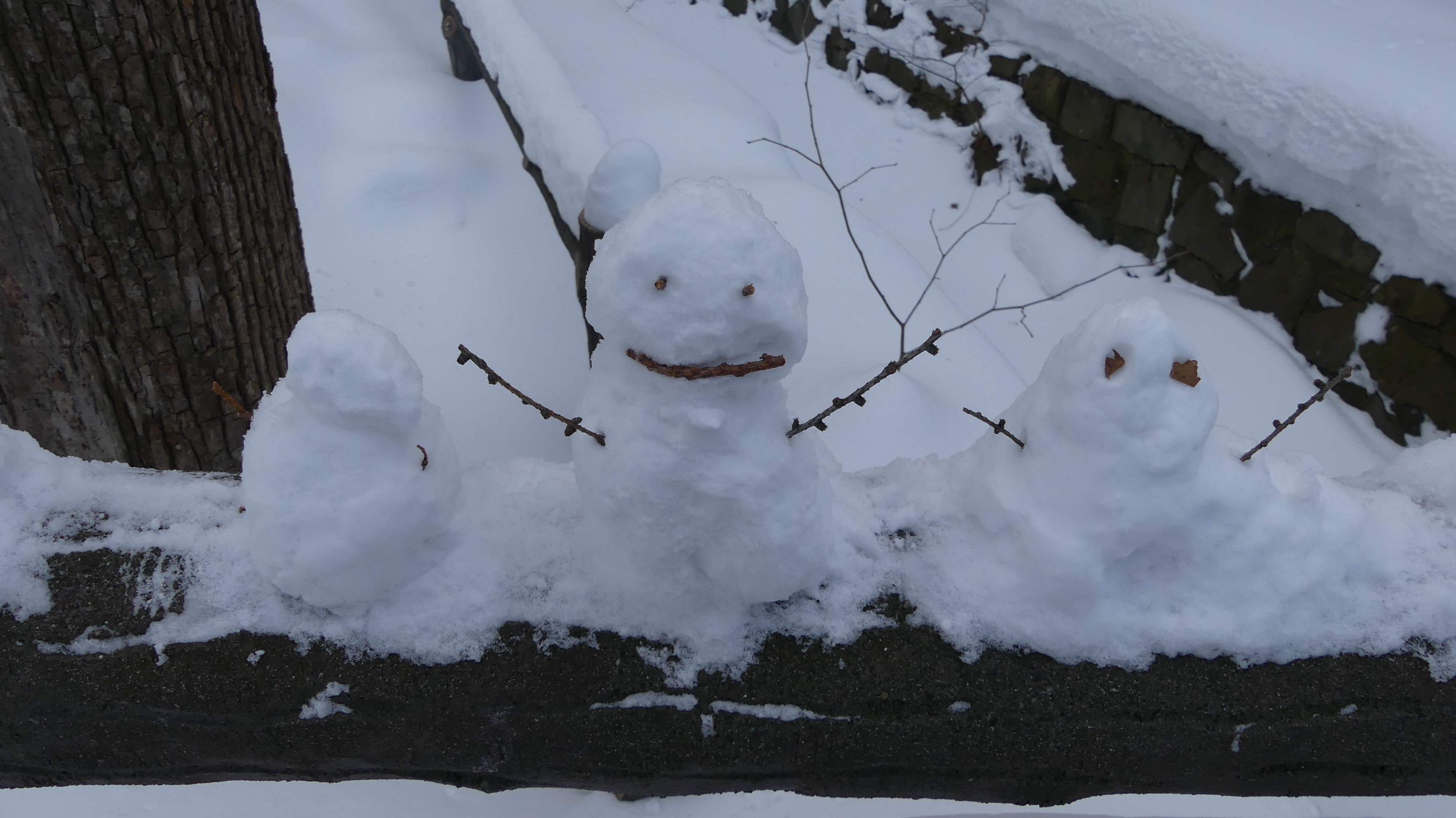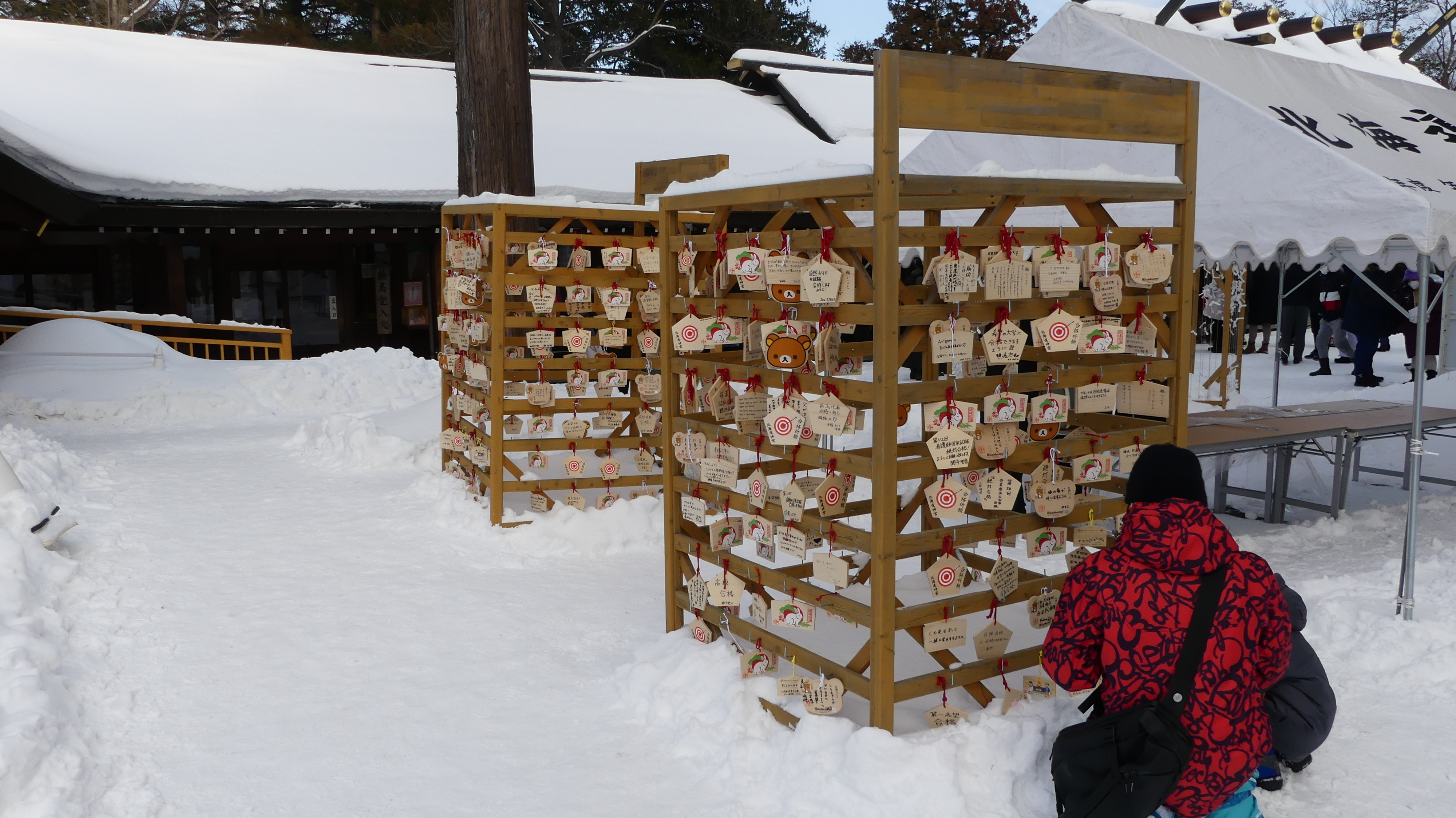 Le temple est situé dans le parc Maruyama où j’ai pu voir ces adorables bonhommes de neige miniatures, créés sur une rambarde de pont, ainsi que des silhouettes de neige crées directement sur des troncs d’arbre.