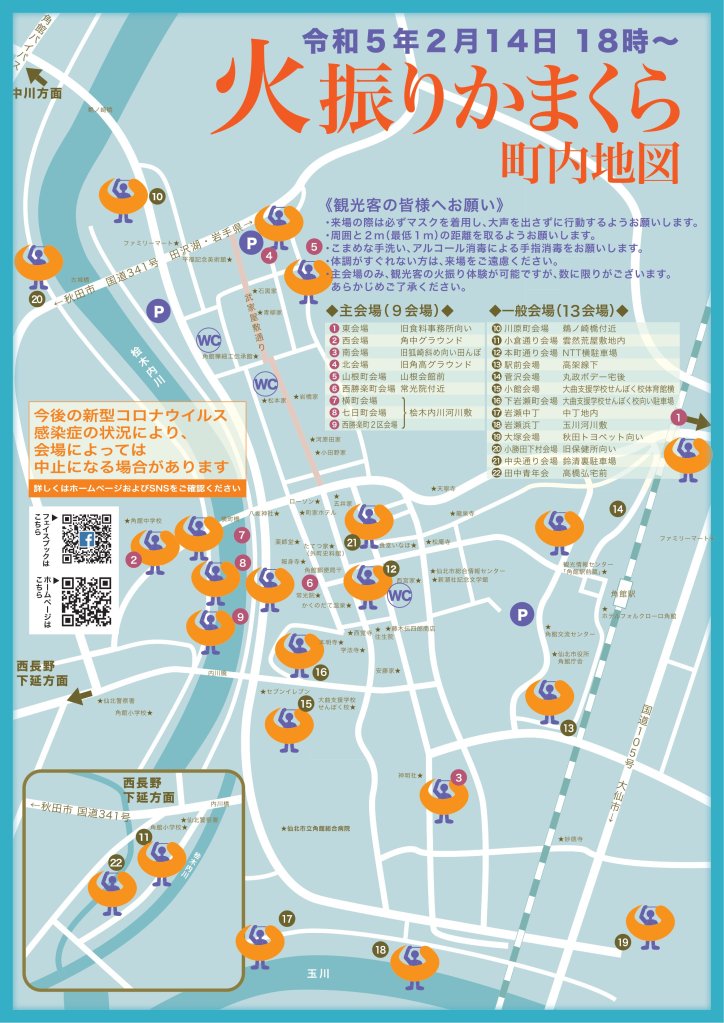 J’ai pu arriver sur une petite place où se trouvaient des festivaliers avec une petite tente servant de la nourriture gratuite en attendant le début des festivités. J’ai aussi pu y découvrir encore un autre stamp rally. Celui-ci était dédié aux festivals d’hiver d’Akita qui se tenaient du 10 à 15. J’ai ainsi pu ainsi apprendre l’existence des festivals de: