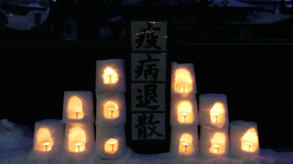 Entre le festival namahage et l’autre prévu, celui de Yokote, j’avais 3 jours de farniente à Akita. Après avoir visité le parc local, pas spécialement ouf en hiver étonnamment, j’ai fini par profiter de ces jours pour rôder dans le quartier autour de la gare et ses centres commerciaux et surtout me reposer à l’hôtel. Et c’est justement en me promenant dans son hall que j’ai pu trouver une brochure touristique qui m’a renseigné sur les festivals de neiges locaux. En effet, la péninsule d’Oga et Yokote ne sont pas les seuls dans cette semaine !