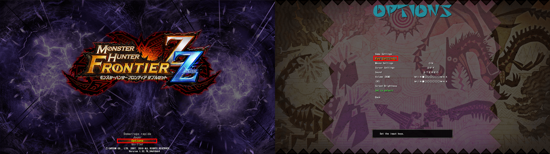 Pour la configuration initiale, soit vous tentez de manier votre manette aux touches étranges (dans mon cas, la validation est sur la touche du haut et l’annulation la touche de gauche), soit vous vous aidez du clavier et de la souris. Lancez le jeu puis allez immédiatement dans Options avant même de commencer à jouer. Allez ensuite dans Key settings.