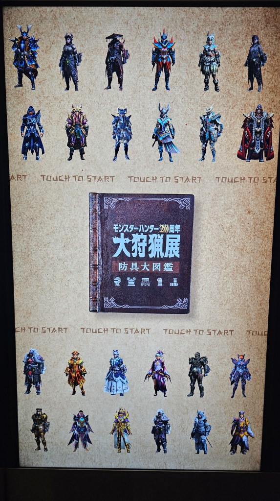 Déception vite oubliée dans cet espace où il est possible d’utiliser 3 moniteurs qui référencent les armures de 229 monstres de la licence principale ! Et ce sans limite de temps. Une fois la queue passée, il est du coup possible de voyager dans le temps à travers 20 ans d’armures.
