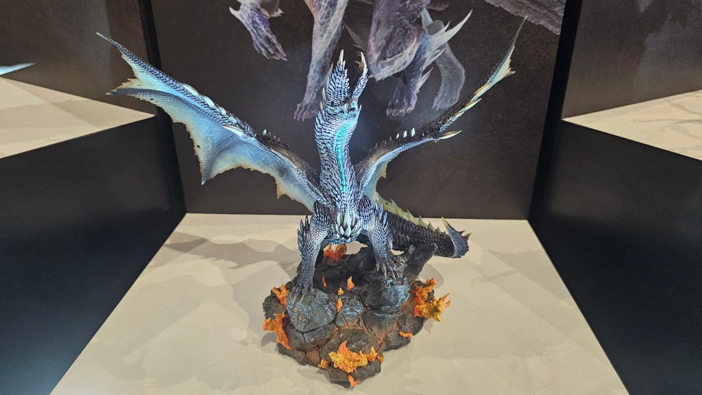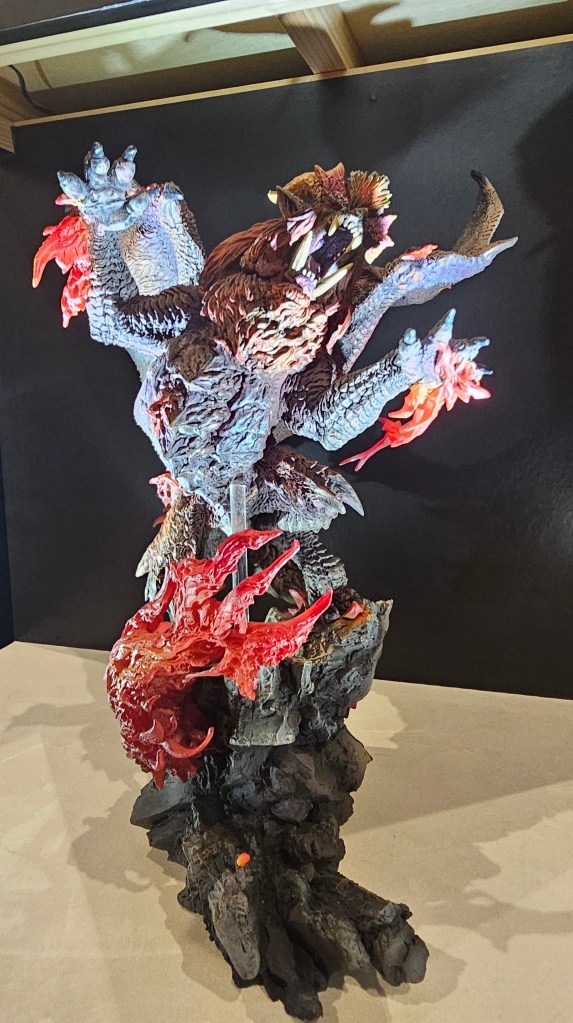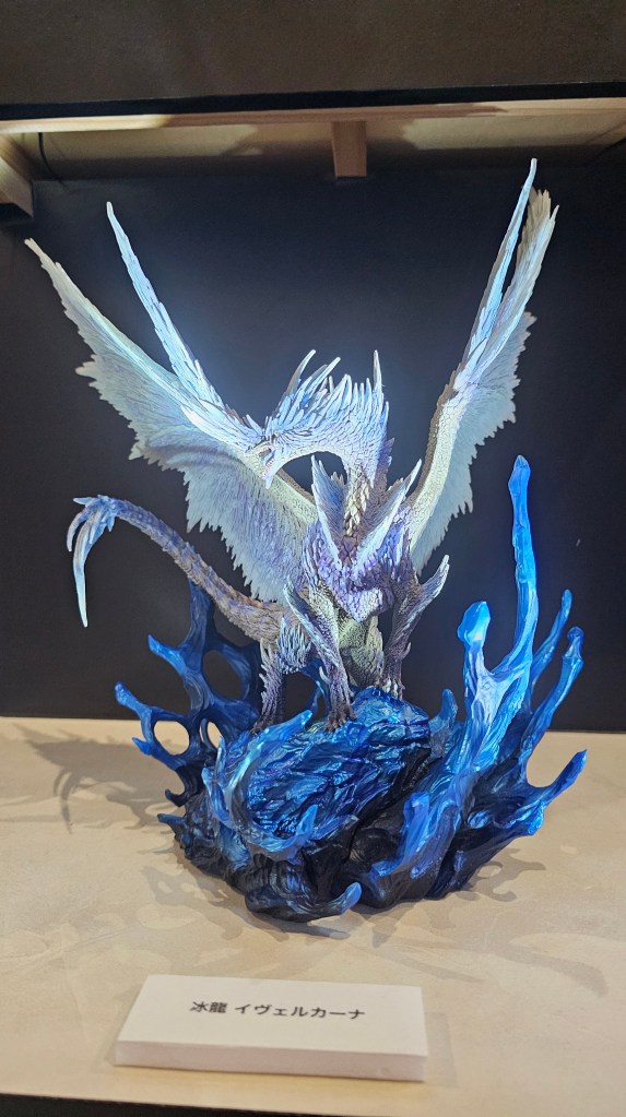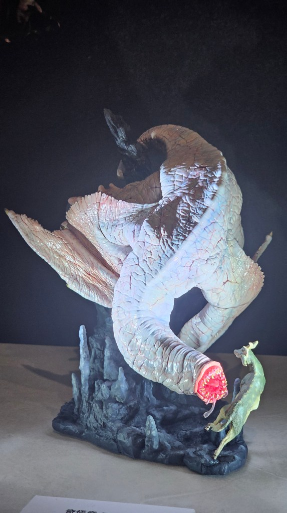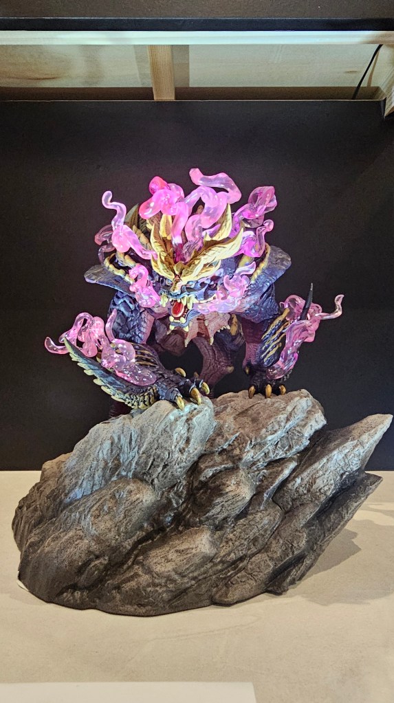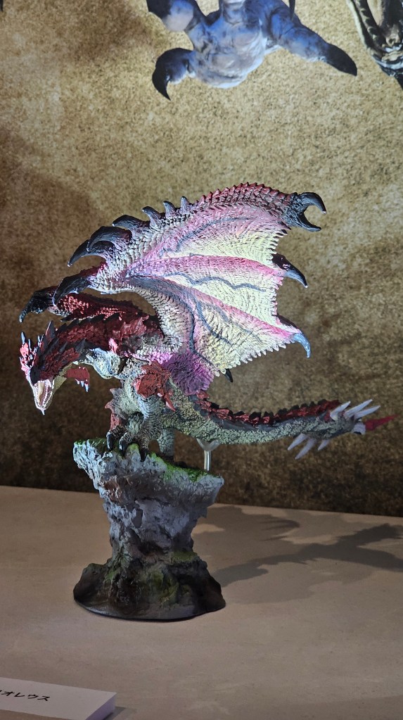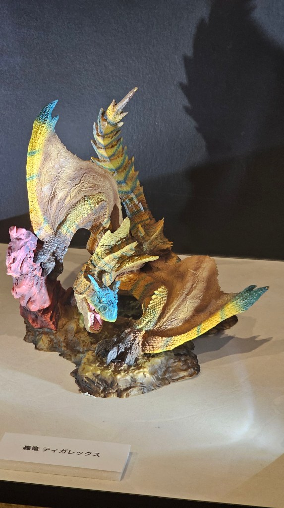 Après ce spectacle particulièrement cool, c’est une zone exposition plus tranquille qui s’ouvre. Dans ce large espace, il est possible d’apprécier les figurines Builder Creator, aka les grandes figurines PVC, sous le feu des projecteurs. Et de se laisser tenter à des achats déraisonnables plus tard à Akihabara (j’ai craqué pour le Deviljho ultimement mais bon faut voir le cours fracassé du yen actuellement).