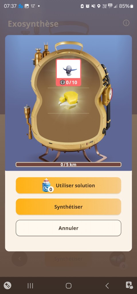 Vous aurez alors le choix entre la synthèse classique qui vous demande de marcher 5km… Ou vous pouvez payer une solution pour 60 gemmes qui permet de directement obtenir les résultats.