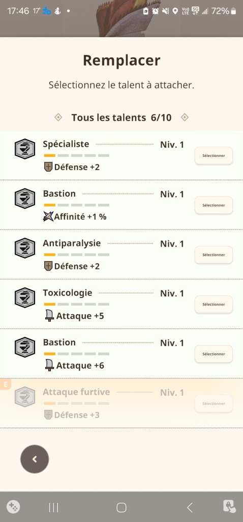 Une fois que tous les slots de stockage sont remplis, vous pouvez supprimer un talent pour faire de l’espace pour un éventuel nouveau talent.