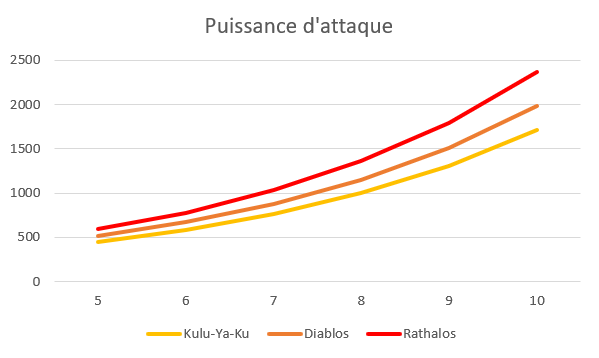 Let’s compare a Rathalos weapon against a fire weak monster with 2 of the most popular raw weapon rush candidates, namely Kulu LS and Diablos bow. The graph obviously also take the Kulu weapon affinity in its calculation and can be used for any of those 3 monsters weapons since the base stats are the same.
